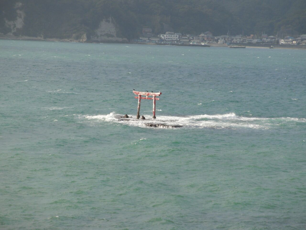 何故か鳥居が海に建っていた。